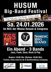 Die Musiklandschaft in Husum ist so vielseitig wie das Angebot auf dem Wochenmarkt. Und im Bereich der Bigbandmusik gibt es mit der Nordic-BigBand, der Beatfactory und der TSS BigBand gleich drei aktive Bands in der Stormstadt.